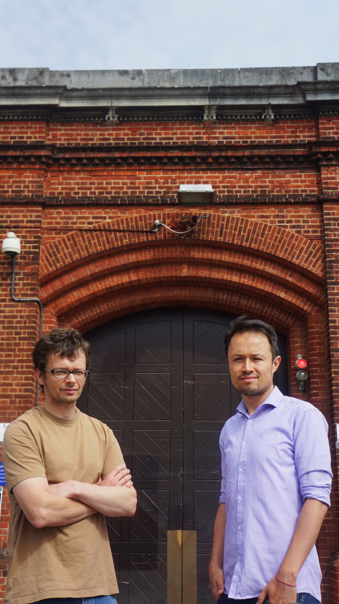 Co-founders Alex and Kieran outside their local prison in Norwich.