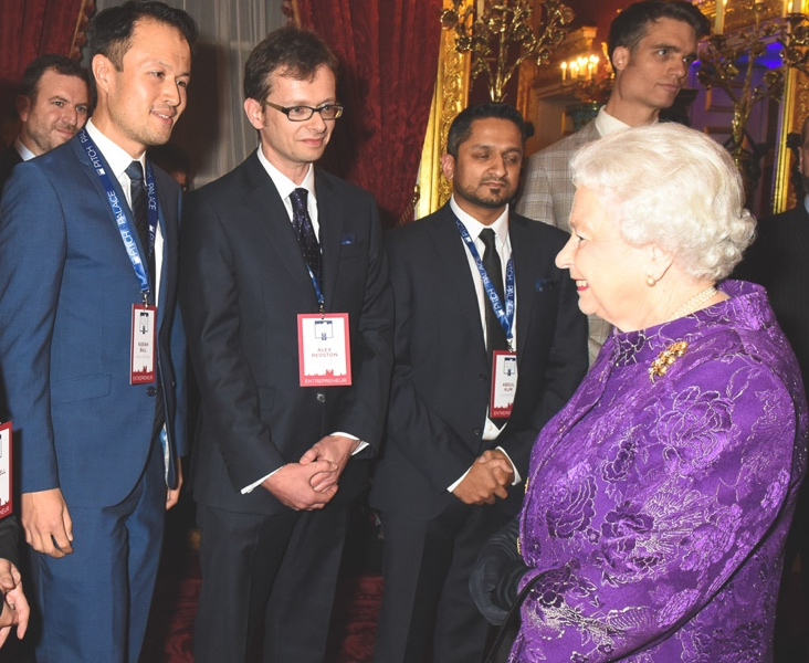Co-founders Kieran and Alex telling Her Majesty The Queen about Prison Voicemail during Pitch@Palace in November 2016.